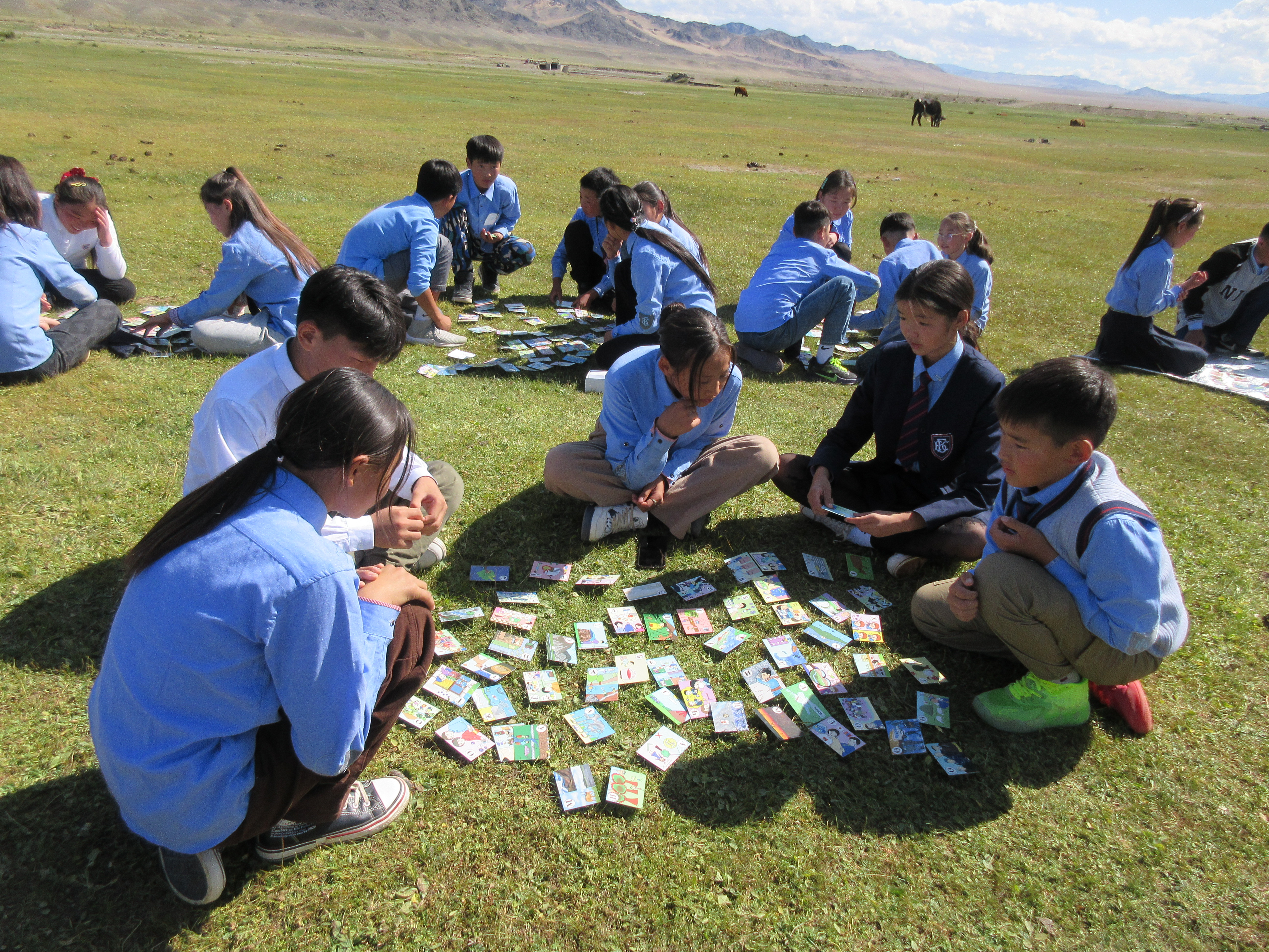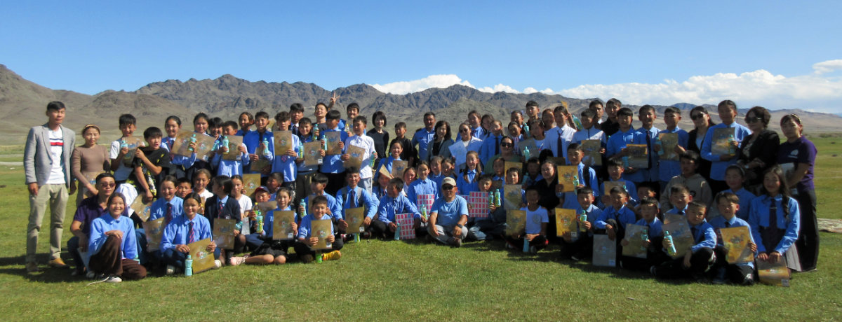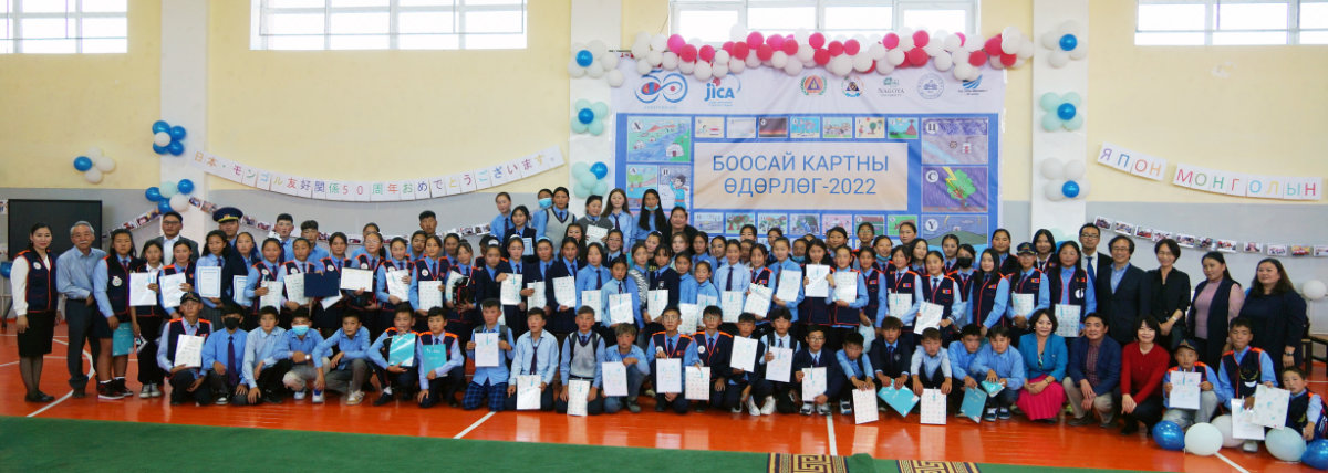 日本のカルタ文化を紹介し、ホブド市の小中学生から絵や詩を募集して、モンゴル初の防災カルタを創りました。